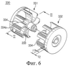 Турбина 330 содержит первую турбину 331 и вторую турбину 332. Каждая турбина 331 и 332, первая и вторая, содержит лопасти 334. Каждая лопасть 334 выполнена в направлении Rb радиуса вращения и имеет неодинаковую толщину. Для этого одна поверхность 334b лопасти 334, которая не подвергается воздействию сопротивления втянутого воздуха, выполнена в форме неравномерной дуги. Более конкретно, поверхность 334b лопасти 334 выполнена в форме неравномерной дуги, так что толщина Tm концевой части 334а лопасти 334 превышает толщину Tb остальной части лопасти 334. Соответственно к лопасти 334 добавляется вес.