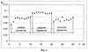 На фиг.3 показаны характерные ПАФ для различной силы прижатия «живого» пальца. Несмотря на то, что сами кривые смещаются вдоль оси «у», величина M практически не изменяется, сохраняются также положения локальных минимума и максимумов. На фиг.4 показан разброс величины M для конкретного пользователя (по горизонтальной шкале откладывается номер «n» эксперимента). В экспериментах палец прикладывался с различной силой.