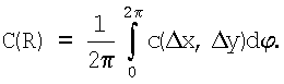 – проводится интегрирование автокорреляционной функции по азимутальной координате для различных расстояний R от центра отпечатка для вычисления приведенной автокорреляционной функции (ПАФ):