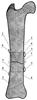 Операция согласно предлагаемому способу описана на примере фиксации проксимального 1 и дистального 2 отломков бедренной кости кошки с поперечной линией перелома 3 при помощи спиц 4 с ушком 5 с их одной стороны и свободным концом 6 с другой и проволоки 7, и проводится следующим образом.