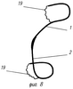 на фиг.1 изображен ортопедический аппарат, вид сбоку; на фиг.2 – ортопедический аппарат, вид спереди, эластичный кожух 18, гибкая тяга 6 и защитная оболочка 12 условно не показаны; на фиг.3 – ортопедический аппарат, в согнутом состоянии; на фиг.4 – самозажимной эксцентриковый захват в расзажатом состоянии; на фиг.5 – самозажимной эксцентриковый захват в зажатом состоянии; на фиг.6 и 7 – упругий шарнир в различных компоновочных состояниях; на фиг.8 – ортопедический аппарат, вид общий.