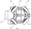 Четырехколесное транспортное средство имеет в своем составе рамную несущую конструкцию 19 с подножкой 20. На несущей конструкции установлено кресло 21, под сиденьем которого расположены аккумуляторы 22. Транспортное средство имеет два передних колеса 23, 24 и два задних колеса 25, 26. Опорами передних и задних колес могут служить стойки, выполненные в виде Г-образно изогнутых пластин, подобно тому, как это описано выше и представлено на Фиг.2. Горизонтальная полка каждой пластины неподвижно соединена с вертикальным выходным валом редуктора поворота данного колеса. Вал приводится в движение соответствующим электродвигателем. На вертикальной полке каждой стойки закреплено колесо: либо его ось, если колесо не является ведущим, либо двигатель колеса, если колесо является ведущим. Таким образом, между приводом поворота каждого колеса имеется связь с опорой колеса, имеющей вертикальную ось поворота. Опора колеса может быть выполнена в виде вилки, или в виде кронштейна, или в любом другом приемлемом конструкционном виде. В четырехколесном транспортном средстве ведущими колесами могут быть передние колеса, или задние колеса, или диагонально расположенные колеса, или все колеса. Управление колесами осуществляется от пульта управления, например, снабженного джойстиком. Пульт может быть закреплен на подлокотнике кресла.