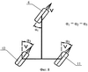 Позиция III (центр ОIII) – поворот тремя колесами (для четырехколесного – четырьмя колесами) заявляемого средства по второму режиму. Оба задних колеса поворачиваются вокруг своих вертикальных осей поворота в противоположную сторону, чем переднее (для четырехколесного – чем передние) и с разной скоростью. Для трехколесного средства внутреннее заднее колесо поворачивается с большей скоростью, чем заднее наружное. Для четырехколесного – переднее внутреннее колесо поворачивается быстрее переднего наружного, а заднее внутреннее – быстрее заднего наружного.