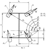 Так как колеса движутся каждое по своему радиусу (R1 R2, R3), моменты на ведущих колесах и угловые скорости их различны, это также быть учтено в системе управления.