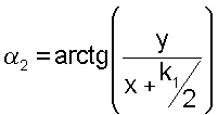 2 – угол поворота колеса, едущего по дуге большего радиуса (наружное колесо),