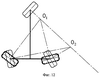 Для функционирования системы управления необходимо решить неопределенность связи между углами поворота колес, состоящую в том, что при повороте переднего колеса (для четырехколесного средства – при повороте передних колес) на определенный угол задние колеса могу иметь множество значений углов поворота, которым соответствуют различные положения центра поворота (к примеру, центры O1 и О2 на Фиг.12).