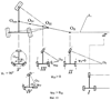 Второй режим (см. Фиг.10), повышающий маневренность транспортного средства – режим поворота. При этом система управления периодически считывает информацию с задающего органа (задающего колеса, имеющего ручной привод, джойстика и пр.), рассчитывает углы поворота управляемых колес и вырабатывает управляющие сигналы на соответствующие приводы. Точка О – центр поворота. Математически связь между управляемыми колесами трехколесного транспортного средства можно описать следующим образом: