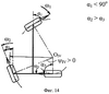 В заявляемом устройстве система управления задает углы поворота колес в зависимости от выбора режима движения (прямолинейное, поворот, движение «крабом») и положения задающего органа (угол поворота переднего колеса, угол отклонения рукоятки джойстика и т.д.) Для трехколесного транспортного средства в случае, если задающим элементом является переднее колесо, углы поворота двух задних колес 2, 3 определяются углом поворота переднего колеса 1, а также геометрическими характеристиками центра поворота. На участках траектории центра поворота, которые описываются как отрезки прямой «А» на Фиг.13 и более подробно – прямая «А » на Фиг.19, эти зависимости могут быть выражены как
