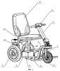 1. Самоходное транспортное средство, содержащее несущую конструкцию с закрепленным креслом, источником питания, передним поворотным колесом, двумя задними колесами и системой управления, отличающееся тем, что каждое заднее колесо снабжено приводом для независимого поворота вокруг вертикальной оси, каждый привод закреплен на задней части несущей конструкции и взаимосвязан с опорой колеса, имеющей вертикальную осью поворота, приводы поворота колес выполнены с возможностью реализации как минимум двух режимов движения, первый из которых режим поворота задних колес – синхронно и на одинаковый угол с передним колесом, а второй режим поворота задних колес, при котором проекции горизонтальных осей вращения всех колес на опорную поверхность сходятся в одной точке, являющейся центром поворота транспортного средства, при этом угол между проекциями для задних колес отличен от нуля, причем при втором режиме центр поворота находится на продольной оси проекции на опорную поверхность продольной плоскости симметрии транспортного средства и отстоит от вертикальной плоскости поворота переднего колеса на расстоянии L, определяемом интервалом от L=0,1H до L=0,9Н, где Н – колесная база.
