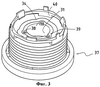Приемник 37 содержит на боковой стороне боковую винтовую резьбу для установки на корпусе путем навинчивания соответствующих элементов. Приемник имеет три периферийные инжекционные трубки, одна трубка 38 показана на разрезе (фиг.4). Три инжекционные трубки 38 являются одинаковыми и расположены вокруг центрального глухого отверстия 31 приемника, при этом они соединяются с отверстием 31 при помощи впускных отверстий 39.