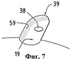 На фиг.6 представлен другой вариант выполнения, отличающийся от предыдущего более широким желобком в части, расположенной перпендикулярно глухому отверстию, который затем в определенной степени сужается и соединяется с поверхностью 59, проходящей перпендикулярно впускному отверстию.