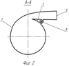 Камера 1 в поперечном сечении имеет форму витка спирали (фиг.2). На входе в камеру 1 в месте, где тыльная сторона патрубка 5 соединена с боковой стенкой камеры 1, установлена поворотная лопатка 7, служащая регулятором скорости потока компонентов смеси. Лопатка 7 жестко соединена с рычагом 8, свободный конец которого размещен в штоке 9, выполненном в донной части камеры 1.