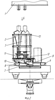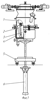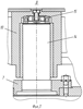 Процесс сборки мешалок ведется аналогично описанному в обратном порядке. Мешалки 2, 3 (фиг.6) поднимаются гидроцилиндром не доходя на величину “с” до торцев валов планетарного редуктора (величина “с” устанавливается опытным путем). После грубой ориентировки осей валов мешалок и планетарного редуктора производится подъем мешалок домкратом (фиг.4) вплотную к валам планетарного редуктора и точная настройка осей валов мешалок и планетарного редуктора, а также шпонки и шпоночного паза за счет того, что упорная пята 16, на которой стоит мешалка, находится на упорном подшипнике 17, позволяющем пяте легко двигаться во всех направлениях в горизонтальной плоскости на величину, ограниченную размером “а”.