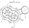 На фиг.3 изображена посадка водила 10 на ось 14 основания 7. Для возможности свободного поворота водила 10 вокруг оси установлен упорный подшипник 15.