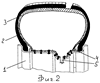 На фигуре 2 изображено колесо автомобильное с пневматическим опорным телом аварийного движения, размещенным непосредственно на ободе (вид с боку в разрезе), в аварийном состоянии при частично поврежденной покрышке.