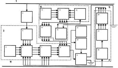 2. В данном устройстве сигнал помехи, в целом, корректируется по фазе и амплитуде. В обратную связь с целью такой коррекции отбирается часть сигнала, содержащего сумму гармоник, наведенных в коммуникациях связи. В этом случае такая корректировка “фазы” и амплитуды теряет смысл, поскольку каждая гармоника при работе устройства на активно-реактивную нагрузку сдвигается на свой угол. Необходимо также отметить, что стабилизацию работы устройства с помощью обратной связи при работе устройства на активно реактивную нагрузку можно достигнуть, вводя отрицательную обратную связь по каждой гармонике в отдельности, в силу приведенных выше обстоятельств. Сведенья об этом, как и сведения о каких-либо селективных фильтрах в данном патенте отсутствуют.