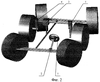 На фиг.1 представлена схема формирования дополнительного поворачивающего момента для случая трехосного транспортного средства с передними и задними управляемыми колесами.