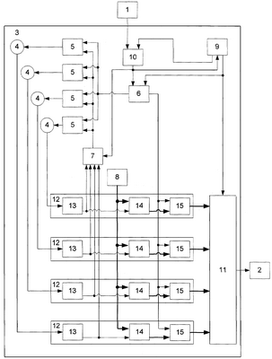 Если на протяжении рабочей зоны выходной сигнал приемных каналов 12 не превысит порогового значения в решающем устройстве 11, то по окончании рабочей зоны на выходе решающего устройства управляющий сигнал на включение активного канала целеуказания и доклассификации 2 не формируется, и временной синхронизатор 9 возобновит рабочий цикл. Это событие трактуется как отсутствие в охраняемой зоне подводного объекта-нарушителя.