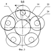 В корпусе переборного механизма 4 и крышке 5 выполнены пять равноудаленных гнезд, в которых установлены роликовые подшипники 21 и шариковые радиально-упорные подшипники 22, являющиеся опорами паразитного блока 23. Паразитный блок 23 включает прямозубое колесо 24 внешнего зацепления с 17-ю прямыми корригированными зубьями, срезанными по высоте для образования 17-и наружных шлиц. На продолжение этих зубьев с натягом насажено косозубое колесо 25 внешнего зацепления с 51-м косым наружным зубом и 17-ю внутренними шлицами, одинаковым для всех пяти паразитных блоков угловым расположением наружных зубьев и внутренних шлиц. Каждое колесо 24 сцеплено с эпициклом 14, а каждое колесо 25 находится в зацеплении с солнечным колесом 8, образуя, таким образом, переборный механизм.
