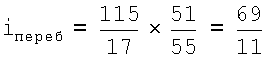 В переборном механизме: солнечное колесо имеет 55 (пятьдесят пять) зубьев, эпицикл – 115 (сто пятнадцать) зубьев, 5 (пять) паразитных блоков с 17 (семнадцатью) зубьями на одном колесе, на срезанное продолжение которых для образования шлицевого соединения жестко насажено второе колесо с 51 (пятьюдесятью одним) зубом. Следовательно, передаточное отношение переборного механизма: