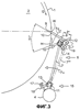 На фиг.2 и 3 показано, что скребковая пластина 8 установлена в верхнем конце пластиночного кронштейна 7 в верхнем подпружиненном поворотном шарнире 12 с горизонтальной осью вращения 14. В данном примере выполнения для подпружиненного верхнего поворотного шарнира 12 выбирался торсионный пружинный подшипник 16 аналогичного рода, что и для нижнего торсионного пружинного подшипника 15. Торсионная пружина верхнего торсионного пружинного подшипника 16 предварительно напрягается, так что в итоге образуется, как показано на чертеже, направленная по часовой стрелке, а также противоположно направлению нижней силы упругости Fu верхняя сила упругости Fo, которая фиксируется при помощи установочного винта 19, чтобы держать скребковую пластину 8 в представленной позиции соскабливания.
