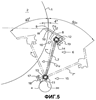 фиг.5 – подобный схематический вид сбоку скребкового элемента, как на фиг.2, однако, соответственно с торсионными пружинами для нижнего и для верхнего поворотного шарнира скребкового элемента, в частности для иллюстрации использованных торсионных пружинных подшипников и, вместе с тем достигаемого большого угла отклонения для пластиночного кронштейна скребкового элемента;