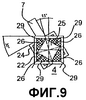 Из фиг.6 в сочетании с фиг.7-9 получается, что для создания т.н. двойной торсионной пружины каждый раз левый боковой корпус 22 и правый боковой корпус 23 соответственно с квадратными внутренними поперечными сечениями (о наружном выполнении корпусов речь не идет) через крепление 30 жестко связаны с системным держателем 4 (на фиг.7-9 намечен чисто схематически). Между обоими боковыми корпусами 22, 23 находится соосно с ними средний корпус 24, в частности, с таким же внутренним поперечным сечением, как у боковых корпусов 22, 23. Сквозь три корпуса 22, 23, 24 проходит внутренний четырехгранник 25. Между четырьмя гранями 26 внутреннего четырехгранника 25 и внутренними поверхностями корпусов 22, 23, 24, под давлением расположены, как показывают чертежи, четыре пружинных элемента 29, состоящие предпочтительно из резины. В среднем корпусе 24 две группы, каждая из четырех пружинных элементов 29, находятся рядом, так что вся конструкция охватывает четыре группы.