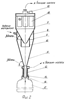 После заправки емкости 17 происходит ее автоматическое размыкание с коническим затвором 12. Прекращение подачи порошка обуславливается запиранием подающего трубопровода 14 атмосферным воздухом и наличием вакуума в полости устройства 6. Надежность срабатывания этого цикла определяется перемещением противовеса 16 по плечу коромысла 15 во время настройки на определенную дозу загрузки.
