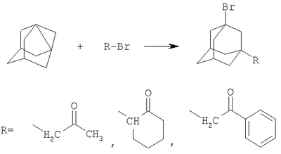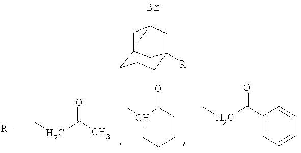 Сущностью метода является реакция получения 3-бромадамантил-1-алкил(арил)кетонов по реакции присоединения к 1,3-дегидроадамантану соответствующих -бромкетонов.