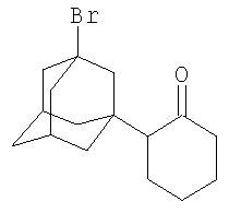 К 9,74 г (0,055 моль) -бромциклогексанона в атмосфере сухого азота при комнатной температуре прикапывают раствор 3 г (0,022 моль) свежевозогнанного 1,3-дегидроадамантана (соотношение 1,3-ДГА : -бромциклогексанона = 1: 2,5) в 20 мл абсолютного диэтилового эфира, после чего реакционную смесь кипятят при температуре 34-40°С в течение 4 часов, после чего растворитель и избыток -бромциклогексанона удаляют перегонкой в вакууме водоструйного насоса, остаток перегоняют в вакууме и получают 4,04 г (0,013 моль, 59%) 2-(3-бромадамантил-1)циклогексанона в виде вязкого масла, при стоянии кристаллизуется. Ткип=245-247°С /20 мм рт. ст. Спектр ЯМР 1Н, , м.д.: 1,19-2,30 (14 Н, адамантил-1,3+6Н, -(СН2)3-), 2,16, 2,203 с (1+2Н, – СНС(O)СН2-).