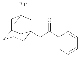 К 6,0 г (0,03 моль) этилового эфира -бромацетофенона в атмосфере сухого азота при комнатной температуре прикапывают раствор 2 г (0,015 моль) свежевозогнанного 1,3-дегидроадамантана (соотношение 1,3-ДГА : -бромацетофенон = 1:2) в 15 мл абсолютного диэтилового эфира, после чего реакционную смесь кипятят при температуре 34-40°С в течение 3 часов, после чего растворитель и избыток -бромацетофетона удаляют перегонкой в вакууме водоструйного насоса, остаток перегоняют в вакууме и получают 4,1 г (0,0123 моль, 82%) (3-бромадамантил-1-метил)фенилкетона. Ткип=248-249°С/10 мм рт.ст. Спектр ЯМР 1Н, , м.д.: 1,12, 1,62, 2,01, 2,20 (14 Н, адамантил-1,3); 2,66 с (2Н, СН2С(О)); 7,34, 7,42, 7,81 3 м (2+1+2Н, C6H5).