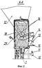 Вторичный воздух через сопла 29 поступает в зону максимальной температуры горения факела, охлаждает его, тем самым подавляя реакцию образования оксидов азота. Кроме того, потоки вторичного воздуха, поступающие из сопл 29, закручивают топочные газы с мелкими частицами «кипящего угля», предотвращая вынос их из зоны горения и увеличивая время пребывания этих частиц в факеле. Процесс циркулирующего закручивания факела обеспечивает более полное выгорание горючих веществ в топливе и повышает кпд котла до 85-87%, в 2-3 раза снижает выбросы по оксидам азота.