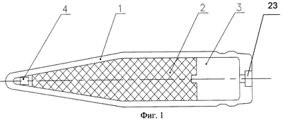 Во-вторых, использование штатного взрывателя обеспечивает адаптивную переналаживаемость боеприпасов, но при этом снижается боевая эффективность снаряда из-за больших суммарных габаритов блока дистанционного управления с источником тока и взрывателя с относительно мощным пьезоэлектрическим преобразователем, функционирующим автономно, инициируя срабатывание электродетонатора без дополнительного источника тока.