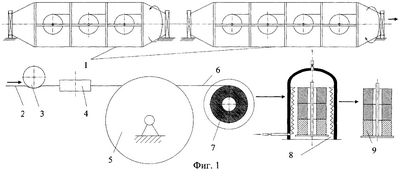 Полученный эластичный сталемедный провод 9 в дальнейшем разрезается на мерные отрезки и используется для изготовления дроссельных перемычек и электротяговых соединителей, например, типа ДМС и ЭМС.