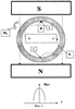 Поскольку намагниченность ферромагнитного вещества при включении магнитного поля устанавливается во времени по закону I(t)= Im[1-ехр(-t/ )], где Im – установившееся (наибольшее возможное) значение разности намагничивании ферромагнетика от магнитов 1 и 4 для заданных значений их магнитных полей, – постоянная релаксации магнитной вязкости для выбранного ферромагнитного вещества ротора 3, то с увеличением угловой скорости вращения ротора 3 снижается величина результирующего магнитного момента М( ), так как М( ) I(t) при t= , где = s/ R, s – продольный размер вдоль кольца ротора, внутри которого намагниченность максимальна с уровнем, например, 0,9 Im, R – радиус кольца ротора 3. Таким образом, получаем М( )=0,9 Im= Im[1-ехр(- s/ R)], где – размерный коэффициент пропорциональности, устанавливаемый опытным путем и зависящий от конструкции устройства (в частности, от величины магнитных зазоров между постоянными магнитами 1 и 4 относительно кольцевого ротора 3, а также от конструкции полюсов этих магнитов).