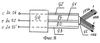 Сигналы разрядов кода поступают с блока 29 /30/ на четвертые /информационные/ входы разрядов первых восьми регистров 831-8 и вторых восьми регистров 861-8. Заполнение регистров 83 сигналами кодов начинается с открытием первого ключа 74, пропускающего сигналы Uд 27 МГц со второго управляющего входа на входы первого распределителя 79 импульсов, тактовые импульсы Uт с выходов которого последовательно поступают параллельно на первые управляющие входы разрядов регистров 831-8. Причем сигналы первых разрядов кодов поступают в разряды регистра 831, сигналы вторых разрядов кодов поступают в разряды регистра 832 и т.д, сигналы восьмых разрядов кодов поступают в разряды регистра 838. По заполнению регистров 831-8 кодами R первой строки сигнал с последнего выхода /1440/ блока 79 закрывает ключ 74 и открывает третий ключ 76, пропускающий импульсы 27 МГц в третий распределитель 81 импульсов. Тактовые импульсы Uт с выходов блока 81 последовательно поступают параллельно на первые управляющие входы разрядов регистров 861-8. По заполнению регистров 86 кодами второй строки импульс с последнего выхода /1440/ блока 81 закрывает ключ 76 и является выходным управляющим сигналом во второй блок 732 регистров. В блоке 732 этот сигнал открывает первый ключ 74, и в нем идет процесс заполнения кодами сигнала R третьей строки первых восьми регистров 83, затем кодами 4-й строки вторых восьми регистров 861-8. Аналогичные процессы заполнения кодами 5 и 6, 7 и 8… 577 и 578 строк идут последовательно в остальных блоках 733-289 регистров. Параллельно такие же процессы идут в блоках регистров 73 в накопителях 32, 37, 38, 43, 44 кодов. По заполнении кодами первого кадра всех накопителей 71 кодов нечетного кадра следует заполнение кодами второго кадра всех накопителей 72 кодов четного кадра. А коды 1156 строк с накопителей 71 кодов нечетного кадра выдаются в соответствующие блоки 45-50 импульсных усилителей. Для этого управляющий сигнал с выхода блока 73289 регистров поступает параллельно на четвертые управляющие входы всех блоков 73 регистров и открывает ключ 75, пропускающий сигналы Uвыд /4,5 МГц/ во второй распределитель 80 импульсов, с выходов которого последовательно сигналы Uвыд поступают на вторые управляющие входы разрядов первых восьми регистров 83 и параллельно на вторые управляющие входы разрядов вторых восьми регистров 86. По сигналам Uвыд коды 578 строк одновременно с 289 блоков регистров выдаются в блок импульсных усилителей. Развертка строк в этот момент отражателем пьезодефлектора 53 идет слева направо. С выдачей последнего /1440-го/ кода сигнал с 1440 выхода распределителя 80 импульсов поступает на счетный вход первого счетчика 84 импульсов, открывает четвертый 77 и пятый 78 ключи и через диод закрывает второй ключ 75. При развертке строк справа налево необходимо коды выдавать в обратной последовательности, т.е. с последнего кода строки 1440-го к первому коду. При этом открытый ключ 77 пропускает сигналы Uвыд 4,5 МГц в четвертый распределитель 82 импульсов, с выходов которого сигналы Uвыд последовательно с первого по 1440-й выходы поступают на вторые управляющие входы разрядов первых восьми регистров 83 и вторых восьми регистров 86, начиная не с первого разряда в регистрах, а с последних разрядов регистров к первым разрядам. Развертка строк отражателем пьезодефлектора 53 идет справа налево. С окончанием выдачи кодов с регистров импульс