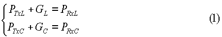 Ниже показан пример названного процесса принятия решения. Пусть GL обозначает выигрыш соединения в специальной системе, а GC – выигрыш соединения в системе UMTS/FDD. Как уже сказано, требуемая мощность передачи тем меньше, чем меньше потери в канале, т.е. чем выше выигрыш соединения. Это можно выразить следующим уравнением: