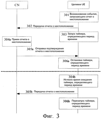Фиг.3 – диалоговая блок-схема передачи целевым UE отчета о местоположении в CN, в соответствии с предпочтительным вариантом осуществления настоящего изобретения.