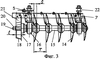 Дисковая батарея 4 содержит сферические диски 14, шпульки 15, подшипниковые узлы 16, опорное устройство 6 в виде диска 17 и обечайки 18, вал 19 и гайки 20 на его концах. Обечайка 18 имеет форму усеченного конуса, большее основание которого расположено на диске 17. Ширина t обечайки 18 меньше расстояния Т между дисками 14, но больше высоты S сегмента сферы диска (S