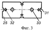 На горизонтальные полки уголков 28 устанавливается перегородка 25 и закрепляется винтами 30. Чтобы обеспечить плотное без зазоров прилегание сплошной перегородки 25 к стенкам корпуса высевающего устройства 8, в ней у краев обеих ее осевых линий выполнено четыре выреза 31, а также 4 отверстия 32 под винты 30 (фиг.3). В перегородке 25 вдоль большой ее оси посредине между малой осью и торцевыми стенками корпуса, симметрично относительно малой оси, выполнены два отверстия 33, в которых закреплены наконечники в виде трубок 24, а на трубки надеты резиновые шланги 23. Вторыми концами резиновые шланги 23 присоединены к другим наконечникам 22, последние прикреплены к стенкам нижней горловины 20 бункера 2, в которых выполнены окна 35.