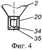 В стенках нижней горловины 20 бункера 2, примыкающих к скатам двухскатного козырька 21, с помощью отверстий 34 присоединяются винтами наконечники 22 резиновых шлангов 23 (фиг.4). Нижние края окон 35 и примыкающие к ним скаты двухскатного козырька 21 горловины бункера 2 имеют полукруглую форму.