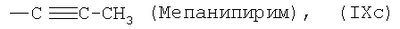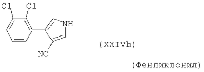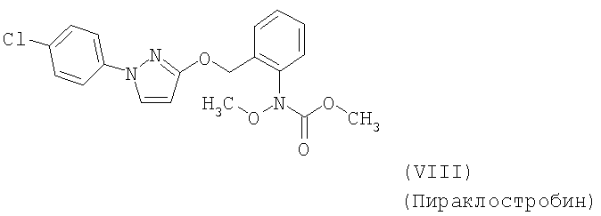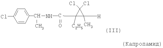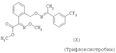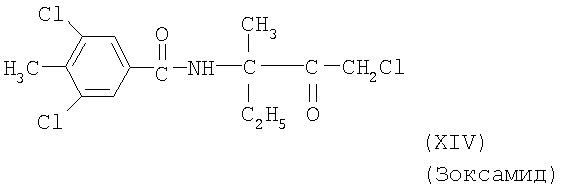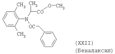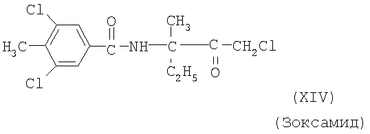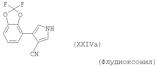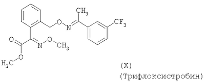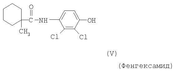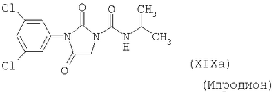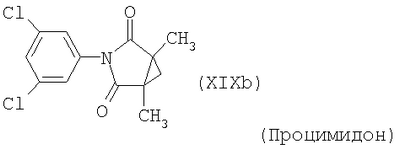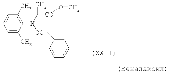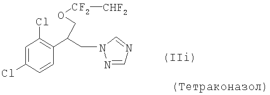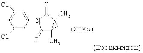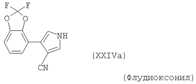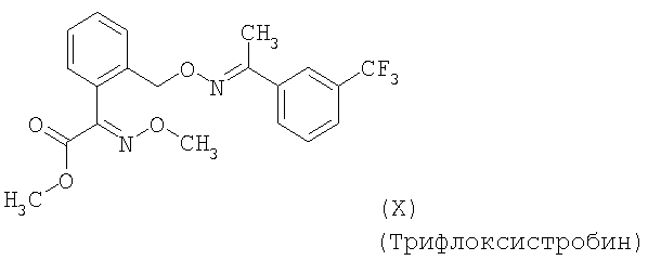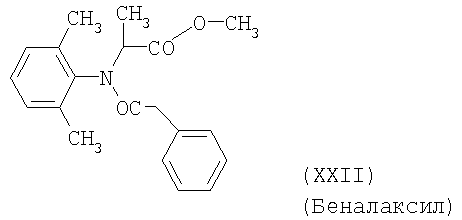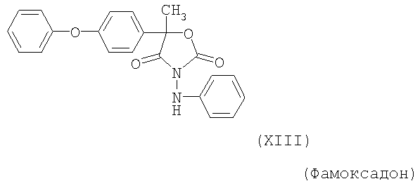 Для простоты приводится, соответственно, только “тионо”-форма. В случае производных гуанидина формулы (XV) речь идет о смеси веществ с тривиальными названиями гуазатины. В качестве компонентов в смеси с соединениями формулы (I) предпочтительными являются следующие биологически активные вещества: (3) Цинеб (IV), (4) Фенгексамид (V), (6) Спироксамин (VII), (7) Соединение формулы (VIII), (8а) Пириметанил (IXa), (8b) Ципродинил (IXb), (8с) Мепанипирим (IXc), (9) Трифлоксистробин (X), (10) Соединение формулы (XI), (11d) Соединение формулы (XIId), (12) Фамоксадон (XIII), (13) Зоксамид (XIV), (14) Соединения формулы (XV), (15) Этабоксам (XVI), (21) Беналаксил (XXII) и (22) Фосфористая кислота (XXIII). В качестве компонентов в смеси с соединениями формулы (I) особенно предпочтительными являются следующие биологически активные вещества: (7) Соединение формулы (VIII), (8а) Пириметанил (IXa), (8b) Ципродинил (IXb), (8с) Мепанипирим (IXc), (9) Трифлоксистробин (X), (11d) Соединение формулы (XIId), (12) Фамоксадон (XIII), (13) Зоксамид (XIV), (15) Этабоксам (XVI), (21) Беналаксил (XXII) и (22) Фосфористая кислота (XXIII). В качестве компонентов в смеси с соединениями формулы (I-а) предпочтительными являются следующие действующие вещества: (3) Цинеб (IV), (4) Фенгексамид (V), (6) Спироксамин (VII), (7) Соединение формулы (VIII), (8а) Пириметанил (IXa), (8b) Ципродинил (IXb), (8с) Мепанипирим (IXc), (9) Трифлоксистробин (X), (10) Соединение формулы (XI), (11d) Соединение формулы (XIId), (12) Фамоксадон (XIII), (13) Зоксамид (XIV), (14) Соединения формулы (XV), (15) Этабоксам (XVI), (21) Беналаксил (XXII) и (22) Фосфористая кислота (XXIII). В качестве компонентов в смеси с соединениями формулы (I-а) особенно предпочтительными являются следующие биологически активные вещества: (7) Соединение формулы (VIII), (8а) Пириметанил (IXa), (8b) Ципродинил (IXb), (8с) Мепанипирим (IXc), (9) Трифлоксистробин (X), (11d) Соединение формулы (XIId), (12) Фамоксадон (XIII), (13) Зоксамид (XIV), (15) Этабоксам (XVI), (21) Беналаксил (XXII) и (22) Фосфористая кислота (XXIII). В частности, биологически активные вещества описываются в следующих публикациях: (1) Соединение формулы (II) a) Pesticide Manual, 11th. Ed. (1997), Seite 933 b) европейская заявка на патент ЕР-А-112284, c) немецкая заявка на патент DE-A-3042303 d) немецкая заявка на патент DE-A-3406993 e) европейская заявка на патент ЕР-А-68813 f) немецкая заявка на патент DE-A-2551560 g) европейская заявка на патент ЕР-А-145294 h) немецкая заявка на патент DE-A-3721786 i) европейская заявка на патент ЕР-А-234242 (2) Соединение формулы (III) европейская заявка на патент ЕР-А-0341475, Pesticide Manual, 11th. Ed. (1997), Seite 744 (3) Соединения формулы (IV) Pesticide Manual, 11th. Ed. (1997), Seite 757 (4) Соединение формулы (V) европейская заявка на патент ЕР-А-0339418 (5) Соединение формулы (VI) европейская заявка на патент ЕР-А-313512, Pesticide Manual, 11th. Ed. (1997), Seite 195 (6) Соединение формулы (VII) европейская заявка на патент ЕР-А-281842, Pesticide Manual, 11th. Ed. (1997), Seite 746 (7) Соединение формулы (VIII) международная заявка WO 96/01256 (8) Соединения формулы (IX) a) Pesticide Manual, 11th. Ed. (1997), Seite 1068 b) Pesticide Manual, 11th. Ed. (1997), Seite 319 c) Pesticide Manual, 11th. Ed. (1997), Seite 464 (9) Соединение формулы (X) европейская заявка на патент ЕР-А-460575 (10) Соединение формулы (XI) международная заявка WO 96/16 048 (11) Соединение формулы (XII) a) европейская заявка на патент ЕР-А-596254 b) европейская заявка на патент ЕР-А-569384 c) немецкая заявка на патент DE 19539324 d) европейская заявка на патент ЕР-А-398692 e) международная заявка WO 97/06133 f) европейская заявка на патент ЕР-А-811612 g) международная заявка WO 96/01256 (12) Соединение формулы (XIII) европейская заявка на патент ЕР-А-393911, Pesticide Manual, 11th. Ed. (1997), Seite 500 (
