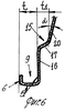 Каска имеет нижний пояс 5 жесткости (фиг.6) с водоотливом 6 в виде расположенной с задней части 7 и с боковых частей 8 корпуса канавки 9. Нижний пояс жесткости 5 имеет толщину t.