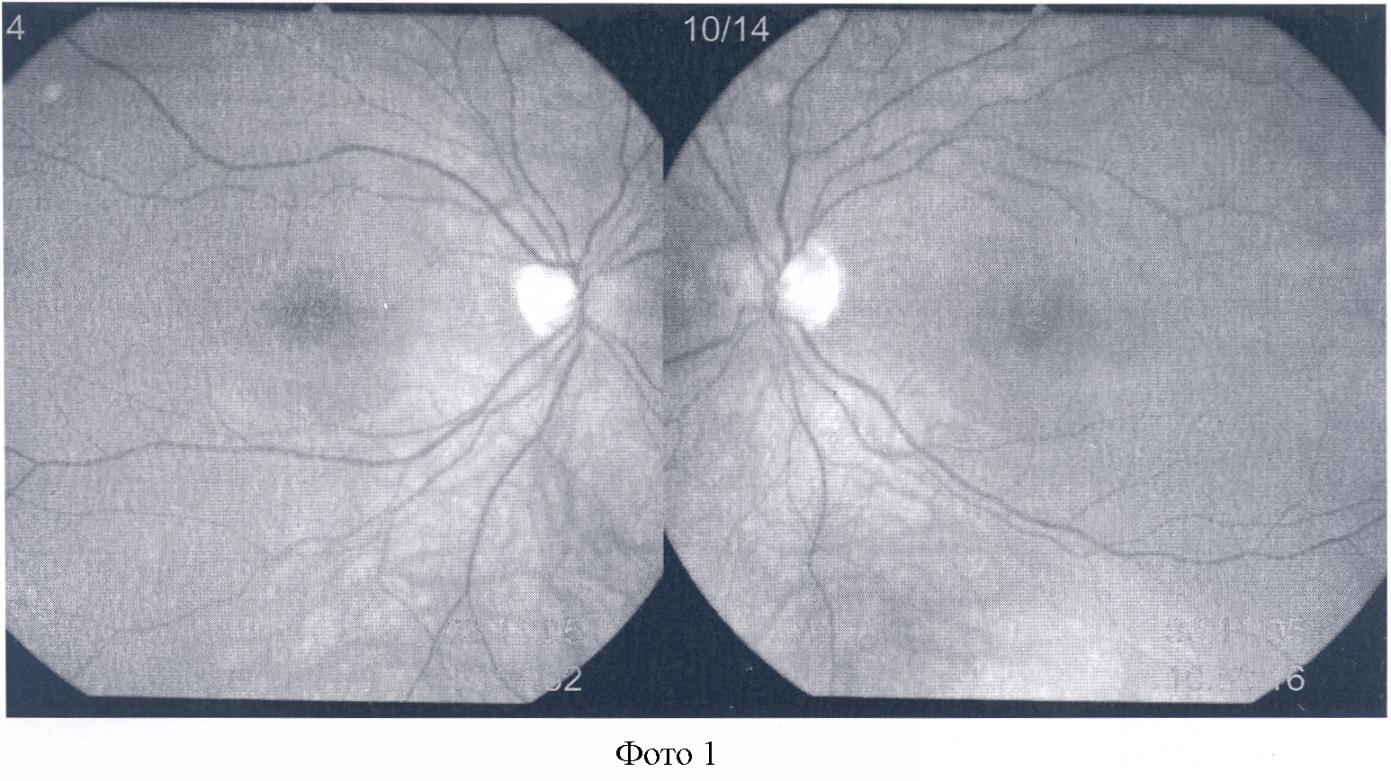 Пример 4. Больной Д. 75 лет обратился в клинику по поводу снижения зрения в обоих глазах. Объективно установлено: острота зрения в левом глазу 0,6, а в правом 0,5. Потемнения на фотографиях, полученных с помощью фундус-камеры, составили: на фоне сетчатки правого глаза 9%, на фоне сетчатки левого глаза 8%, что соответствует начальной стадии катаракты в обоих глазах.
