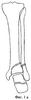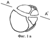 На фиг.1в представлен горизонтальный срез берцовых костей на уровне дистального межберцового синдесмоза по линии А-А’, при чрезсиндесмозном переломе малоберцовой кости в сочетании с переломом переднего края большеберцовой кости. Таким образом, передний и наружный отделы суставной «вилки», являясь ключевыми при данном механизме травмы, потеряв опору, легко смещаются в передненаружном направлении.