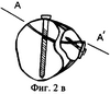 На фиг.2в представлен горизонтальный срез берцовых костей на уровне дистального межберцового синдесмоза по линии А-А’ при чрезсиндесмозном переломе малоберцовой кости в сочетании с переломом переднего края большеберцовой кости после проведенного остеосинтеза.