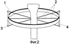 Концы двух из этих спиц закреплены посредством фиксаторов 3 в отверстиях вертикальных кронштейнов 4. Две спицы 2 проходят во фронтальной плоскости наклонно, пересекая горизонтальную плоскость под углом 5 градусов. И только третья спица проходит по линии пересечения фронтальной плоскости с горизонтальной плоскостью кольца.