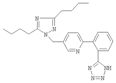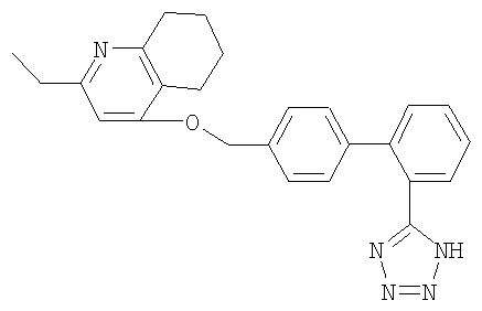соединение, обозначенное как SC-52458, которое имеет следующую формулу и соединение, обозначенное как ZD-8731, которое имеет следующую формулу или в каждом случае их фармацевтически приемлемые соли. Предпочтительными антагонистами AT1-рецептора являются агенты, которые имеются в продаже, наиболее предпочтительным является валсартан или его фармацевтически приемлемая соль. Ингибиторы HMG-CoA-редуктазы (которые называют также ингибиторами Класс ингибиторов HMG-CoA-редуктазы включает соединения, имеющие различные структурные особенности. Следует отметить, например, соединения из группы, включающей аторвастатин, церивастатин, компактин, далвастатин, дигидрокомпактин, флуиндостатин, флувастатин, ловастатин, питавастатин, мевастатин, правастатин, ривастатин, симвастатин и велостатин или в каждом случае их фармацевтически приемлемые соли. Предпочтительными ингибиторами HMG-CoA-редуктазы являются агенты, которые имеются в продаже, наиболее предпочтительными являются флувастатин и питавастатин, а также аторвастатин или в каждом случае их фармацевтически приемлемые соли. Применение так называемых ингибиторов АСЕ (ингибиторы ангиотензинпревращающего фермента) для прекращения ферментативного расщепления ангиотензина I, в результате которого происходит образование ангиотензина II, представляет собой перспективный подход к проблеме регулирования кровяного давления и позволяет также разработать пригодный для практического применения терапевтический метод лечения застойной сердечной недостаточности. Класс ингибиторов АСЕ включает соединения, имеющие различные структурные особенности. Следует отметить, например, соединения из группы, включающей алацеприл, беназеприл, беназеприлат, каптоприл, церонаприл, цилазаприл, делаприл, эналаприл, эналаприлат, фосиноприл, имидаприл, лизиноприл, мовелтоприл, периндоприл, хинаприл, рамиприл, спираприл, темокаприл и трандолаприл, или в каждом случае их фармацевтически приемлемые соли. Предпочтительными ингибиторами АСЕ являются агенты, которые имеются в продаже, наиболее предпочтительными являются беназеприл и эналаприл. Класс блокаторов кальциевых каналов (БКК) в основном состоит из дигидропиридинов (ДГП) и соединений, не относящихся к ДТП, таких как БКК типа дилтиазема и типа верапамила. В качестве БКК, которые можно применять в композиции, предпочтительно выбирают ДГП из ряда, включающего амлодипин, фелодипин, риосидин, исрадипин, лацидипин, никардипин, нифедипин, нигулдипин, нилудипин, нимодипин, нисолдипин, нитрендипин и нивалдипин, а представителей соединений, не относящихся к ДГП, предпочтительно выбирают из ряда, включающего флунаризин, прениламин, дилтиазем, фендилин, галлопамил, мибефрадил, анипамил, тиапамил и верапамил и в каждом случае их фармацевтически приемлемые соли. Все такие БКК можно применять в терапевтических целях, например в качестве гипотензивных лекарственных средств, средств от стенокардии или антиаритмических лекарственных средств. Предпочтительными БКК являются амлопидин, дилтиазем, исрадипин, никардипин, нифедипин, нимодипин, низолдипин, нитрендипин и верапамил или в зависимости от конкретного БКК их фармацевтически приемлемые соли. Наиболее предпочтительным ДТП является амлодипин или его фармацевтически приемлемая соль, прежде всего бесилат. Наибол