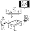 – После совершения хода первым игроком 5 (после полной остановки шаров на первом игровом столе 8) видеокамера 13, расположенная непосредственно над игровым столом 8, производит видеосъемку игровой ситуации 16 на первом игровом столе 8.