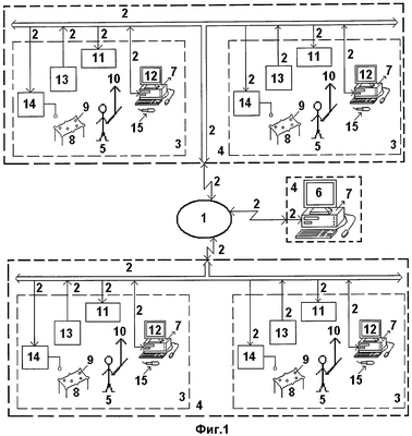 – Полученная таким образом видеоинформация по коммуникационному каналу 2 поступает в компьютер 12, расположенный на первом игровом месте 3 в первом игровом помещении 4.